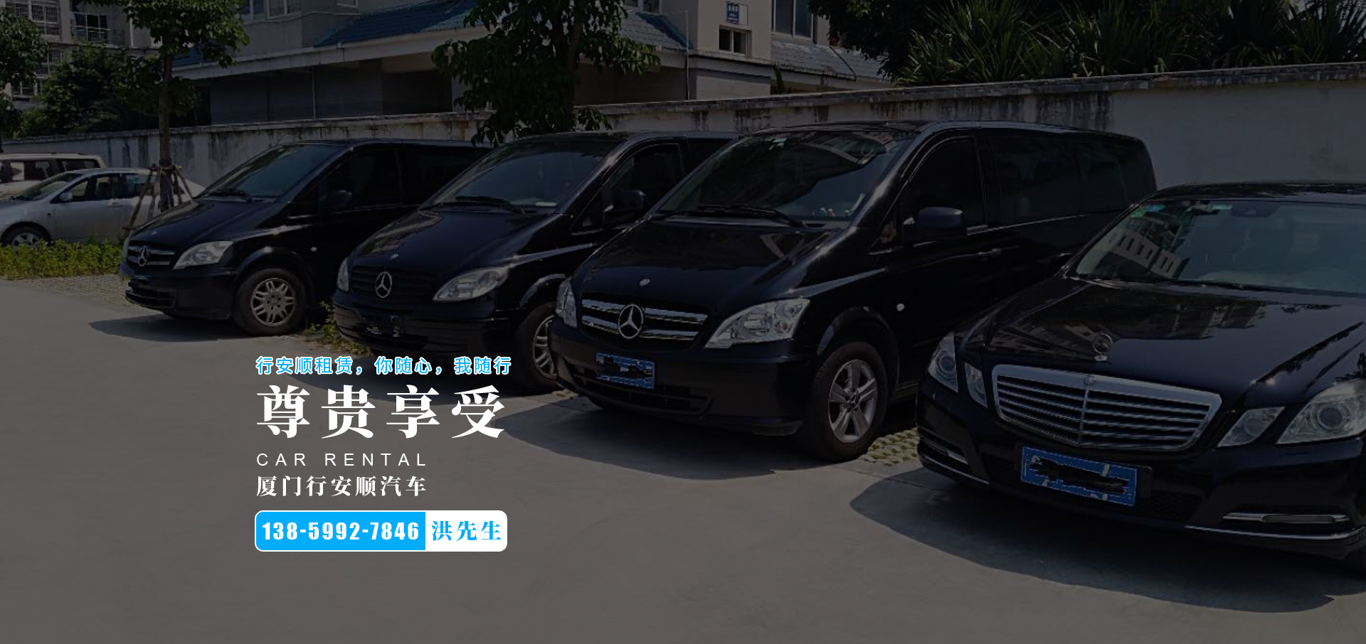 廈門行安順汽車服務有限公司。本公司服務的對象為各種旅游、商務租車及會議服務,目前車型配以奔馳S級、寶馬5系、別克商務、奧迪A6、奔馳E300、奔馳商務7-9座、奔馳19座,豐田海獅14座,豐田考斯特19座,帕薩特,凱美瑞等為主提供給企業個人婚慶、商務、休閑,會議活動需要。公司目前擁有數十名經驗豐富的司機,實際駕駛全部超過二十萬公里并熟悉福建全省路況,公司一直以來都 以、優質的服務為宗旨。公司在制度